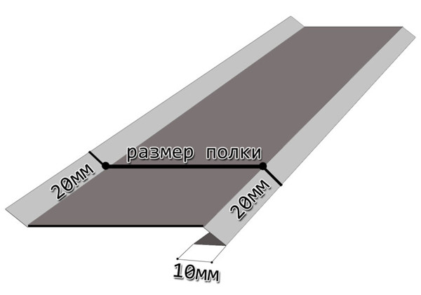 Стандартный размер крепежной планки отлива 20 мм, нижнего загиба 20 мм + 10 мм.